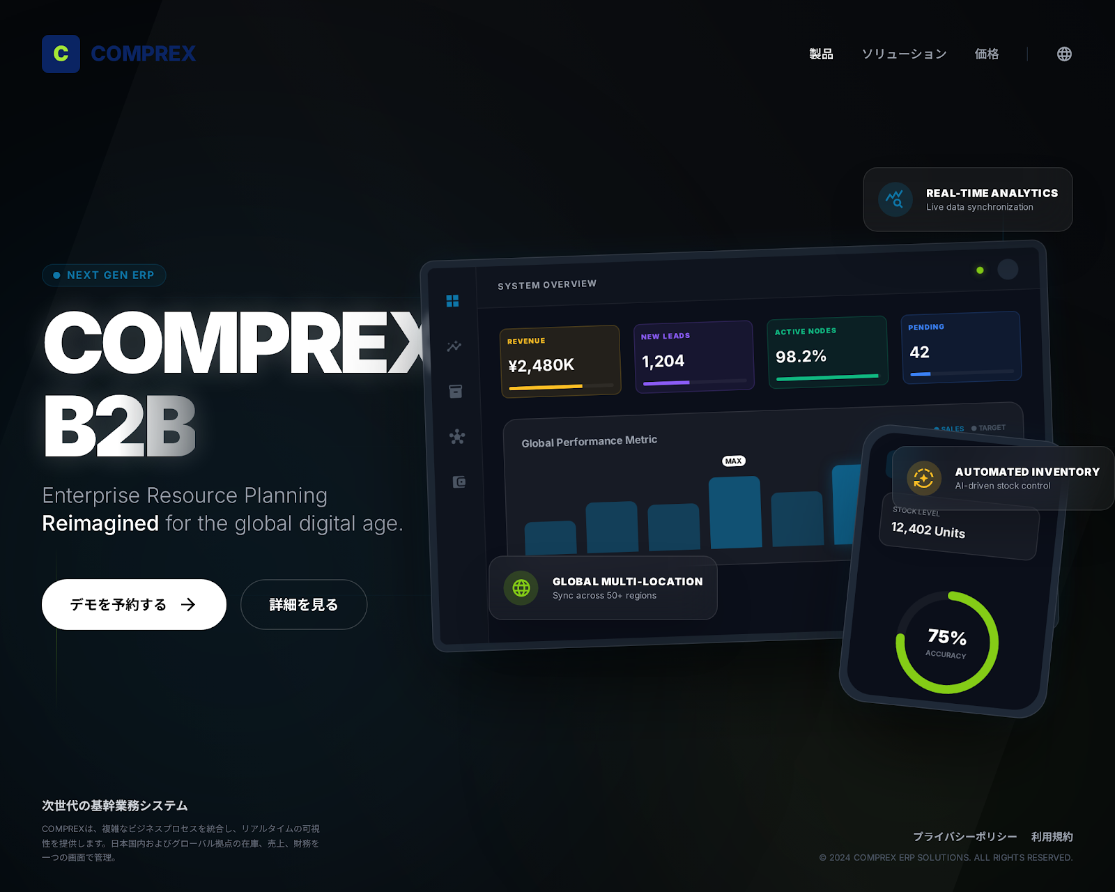 COMPREX B2Bは、複数拠点で事業を展開するB2B企業向けに設計されたクラウド型ERPシステムです。